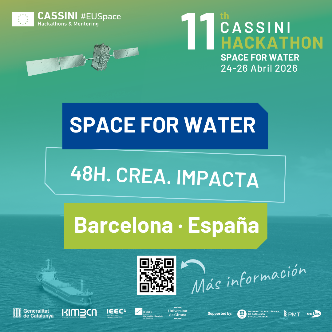 Los días 24, 25 y 26 de abril se celebrará en Barcelona el 11º CASSINI Hackathon, una iniciativa europea que reúne a estudiantes, investigadores, emprendedores y profesionales para desarrollar soluciones innovadoras utilizando tecnologías espaciales europeas.